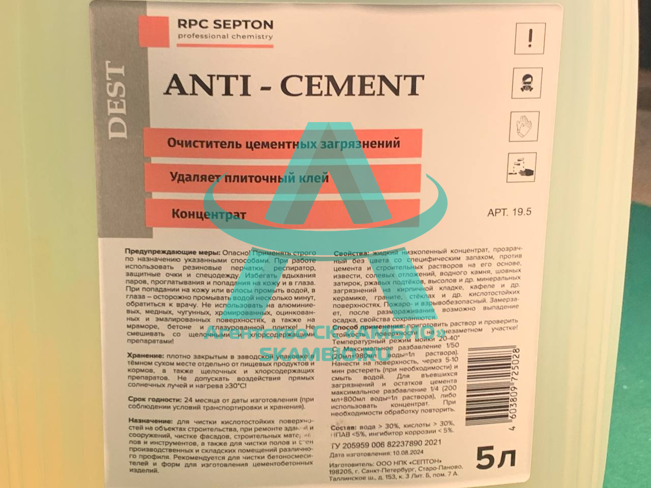✔ Для въевшихся загрязнении и остатков цемента максимальное разбавление 1/4 (200 мл+800мл воды=1л раствора), либо использовать: концентрат.